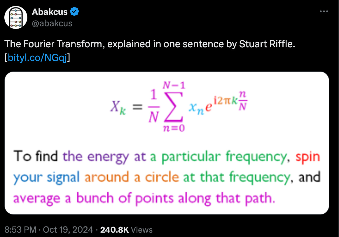 A few notes on the viral "Fourier Transform explained in one sentence"